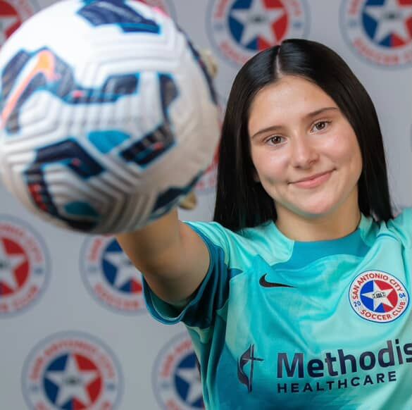 My name is Carolina Flores, and I am a goalkeeper playing for SA City’s 07/08 GA team; I am passionate about soccer and the goalkeeper position, and these passions have allowed me to see daily life from a different perspective while understanding the importance of maximizing every opportunity to improve as a player and as a person.